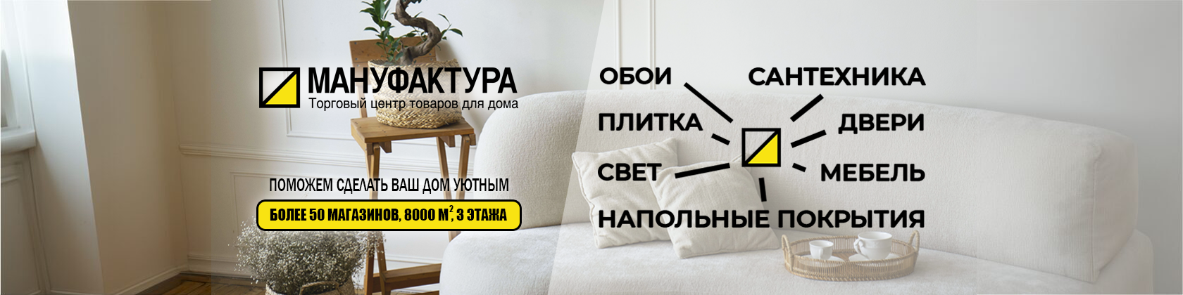 ТЦ Мануфактура Всё для интерьера: свет, сантехника, обои, двери и другие товары для вашего дома