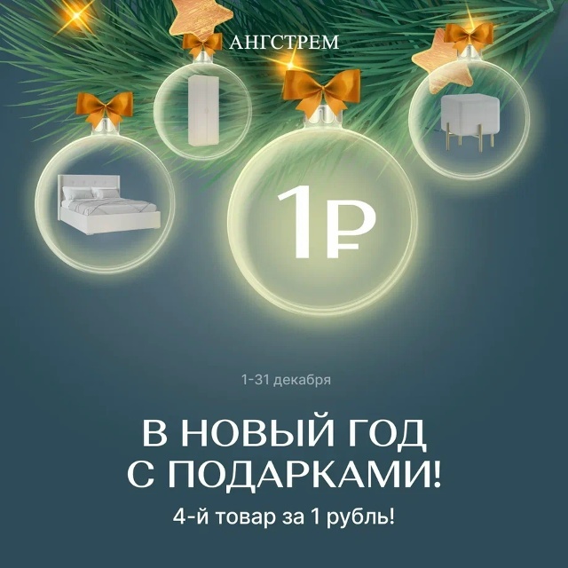 АНГСТРЕМ дарит вам новогоднее настроение: каждый 4-й товар с самой низкой ценой в вашем чеке вы получите за 1 рубль!
