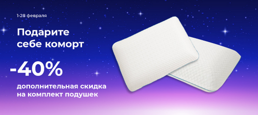 -Дополнительная скидка 40% на комплект подушек