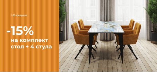 -Дополнительная скидка 15% на комплект стол + 4 стула