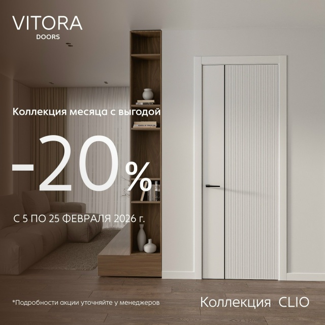 С 5 февраля по 25 февраля получите скидку -20% на коллекцию межкомнатных дверей коллекции CLIO при заказе любой модели в ПВХ в гипермаркете Двери ЛЭНД.