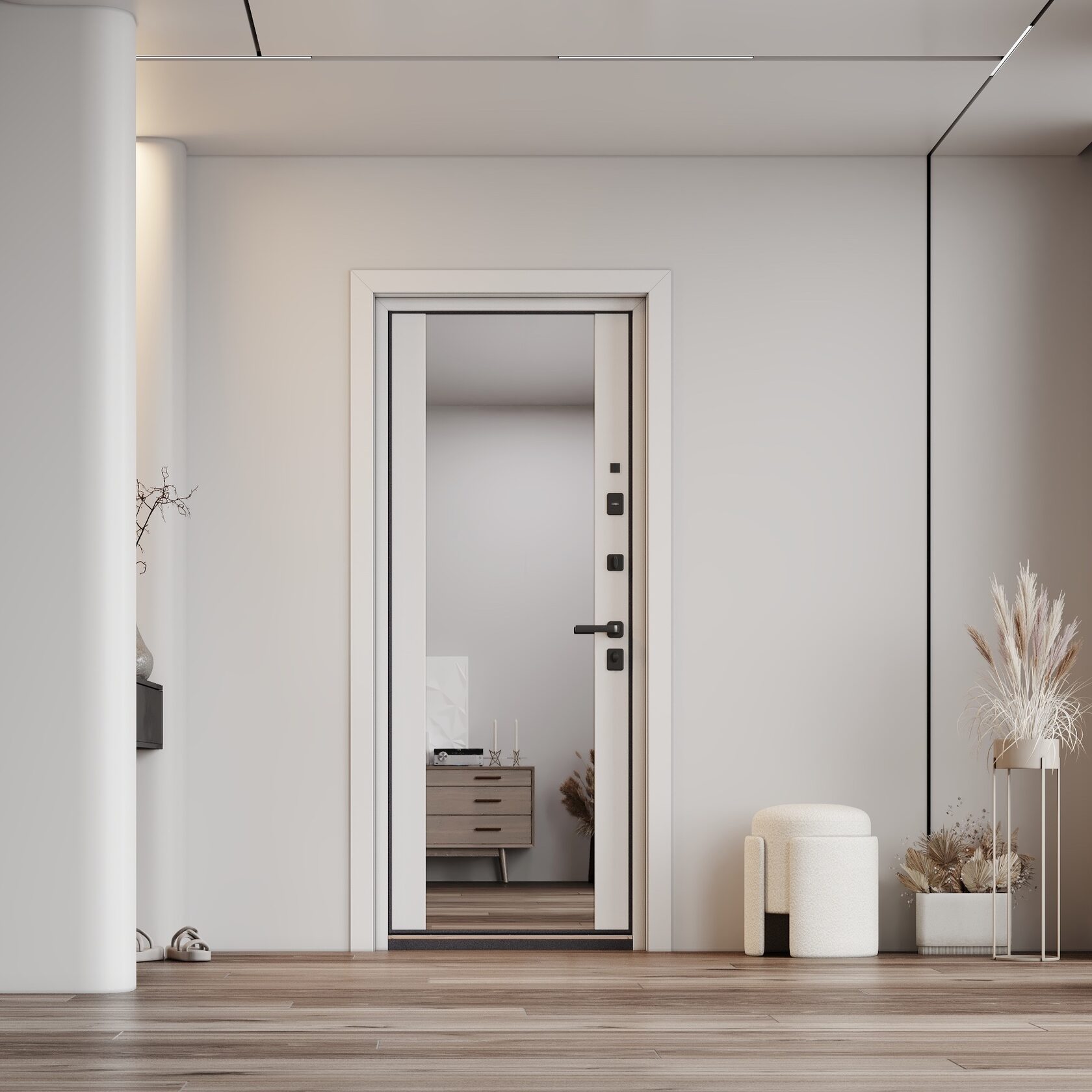 Зеркальная поверхность визуально расширяет пространство, делает прихожую светлее и легче, что особенно важно для небольших помещений. Такая дверь становится не просто функциональным элементом, а полноценным акцентом интерьера.