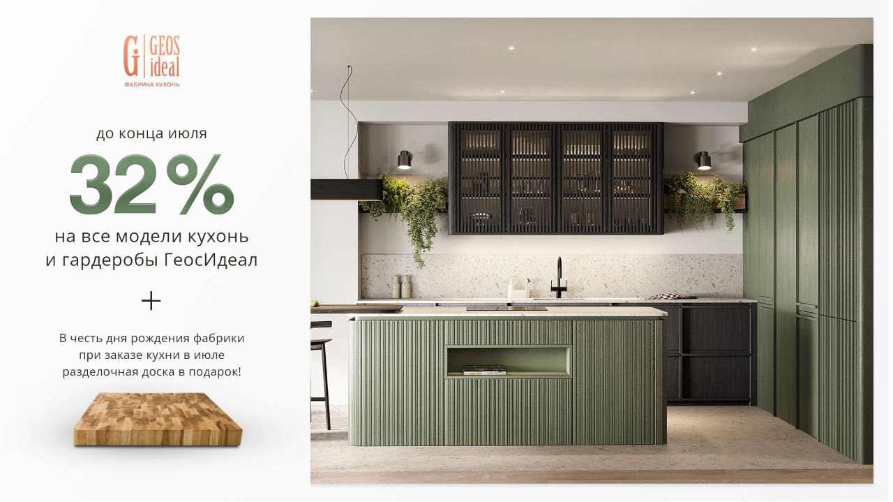 В честь дня рождения фабрики - при заказе кухни в июле разделочная доска в подарок.