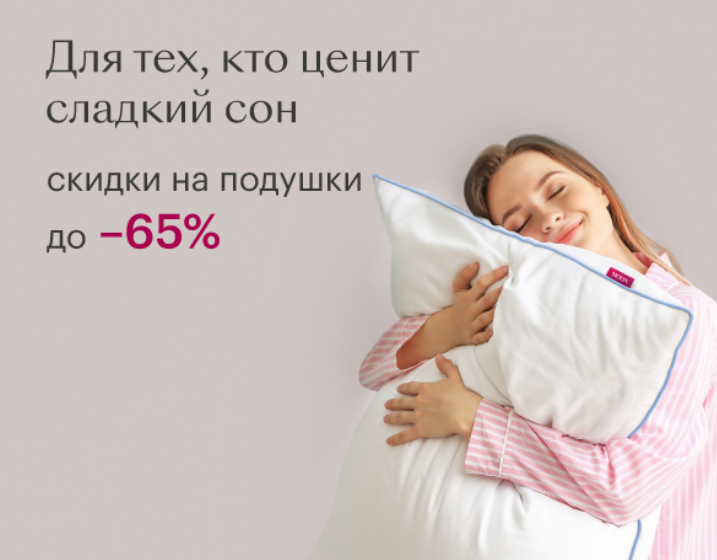 Только сейчас вы можете окунуться в мир сладких снов с нашими уникальными подушками со скидкой до 65%!