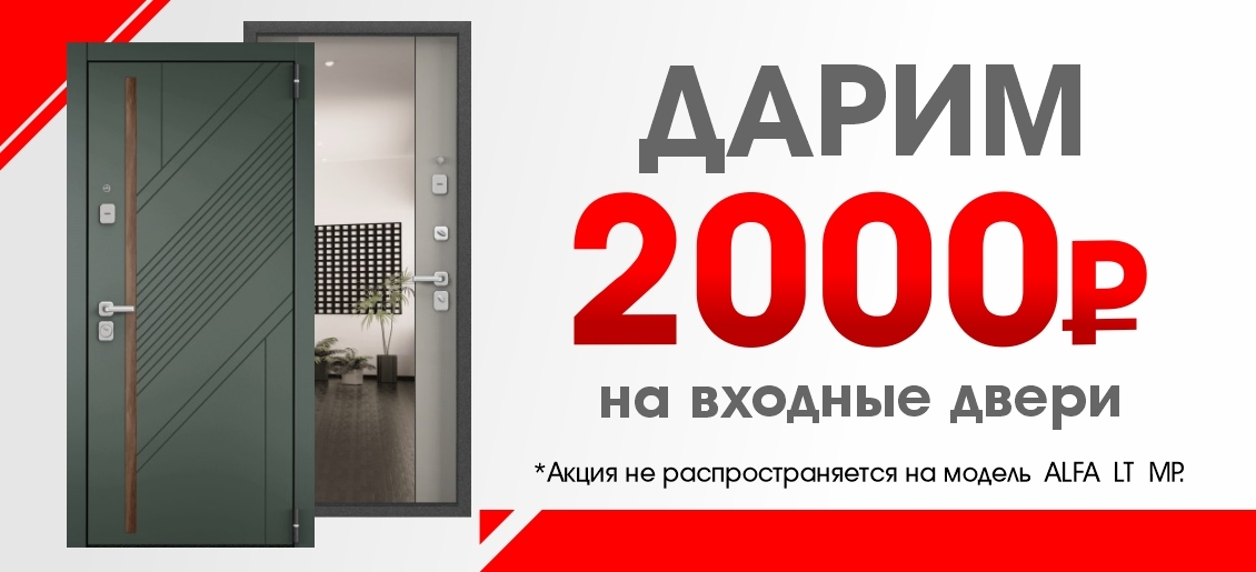 Акция "2000 руб. в подарок на покупку входной двери" не распространяется на модель ALFA LT MP.